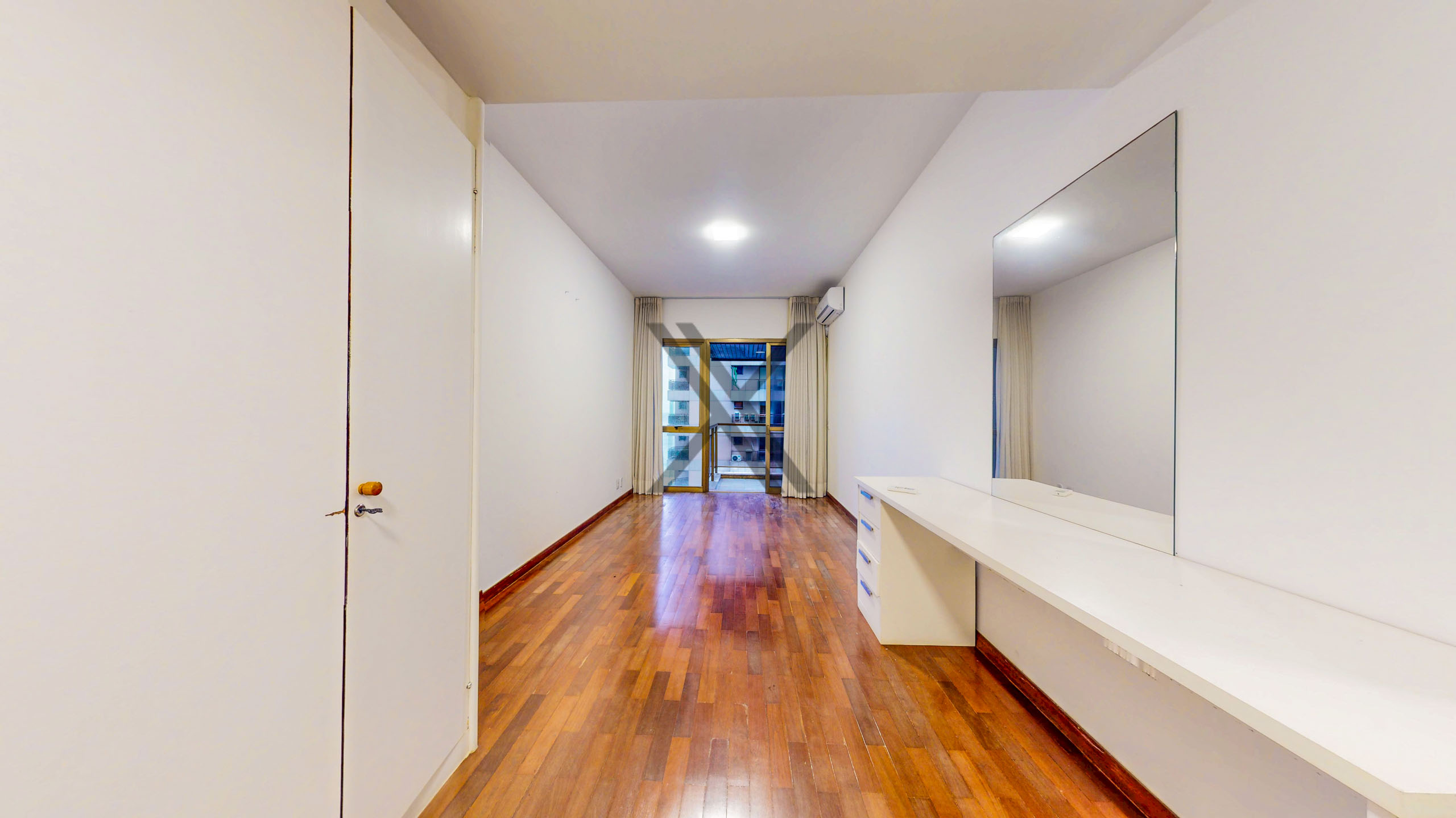 Na parte privativa encontram-se 4 quartos, sendo 2 suítes, todos com boa metragem, grande quantidade de armários em bom estado de conservação e uma excelente ventilação natural devido às amplas janelas.