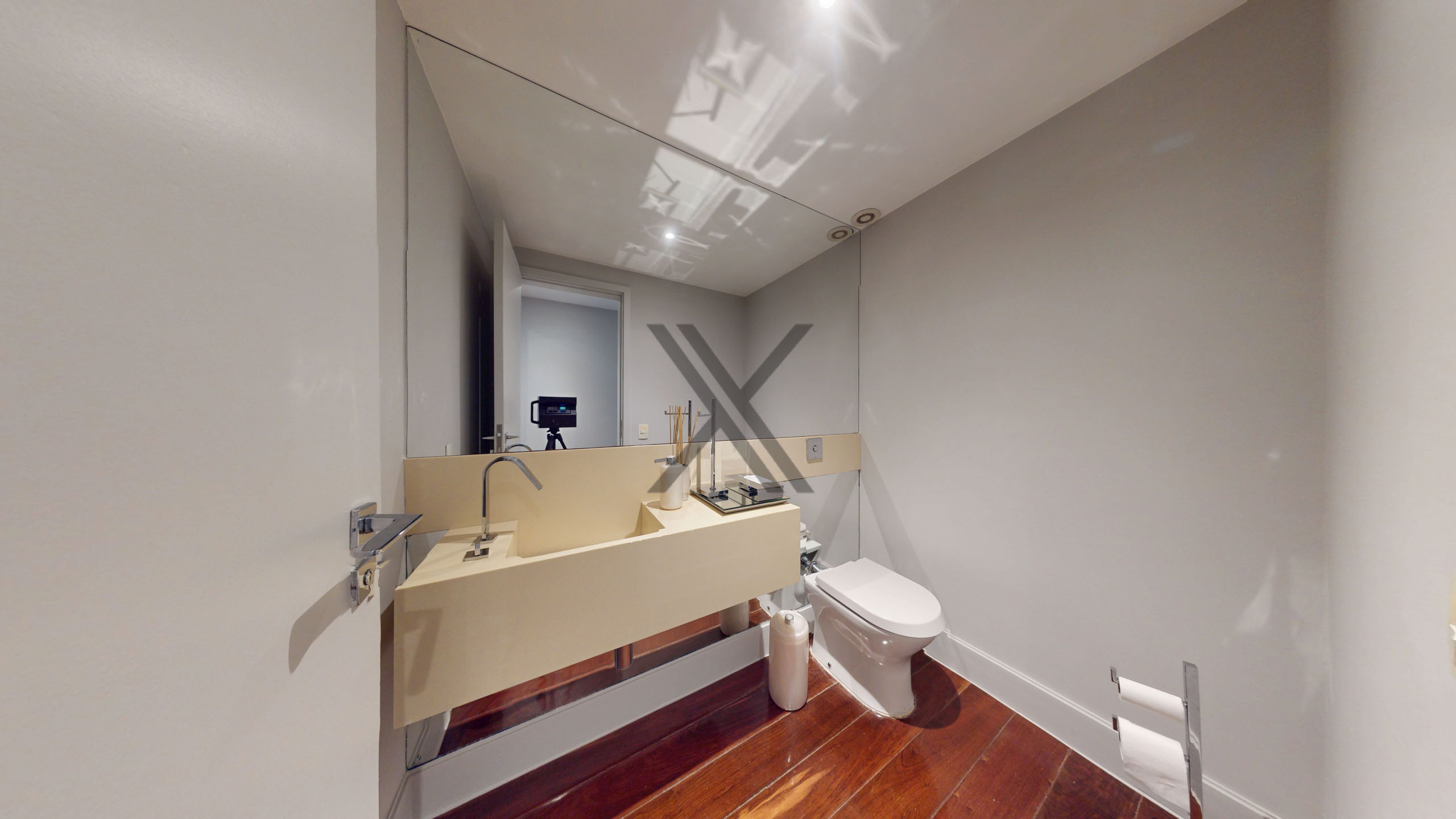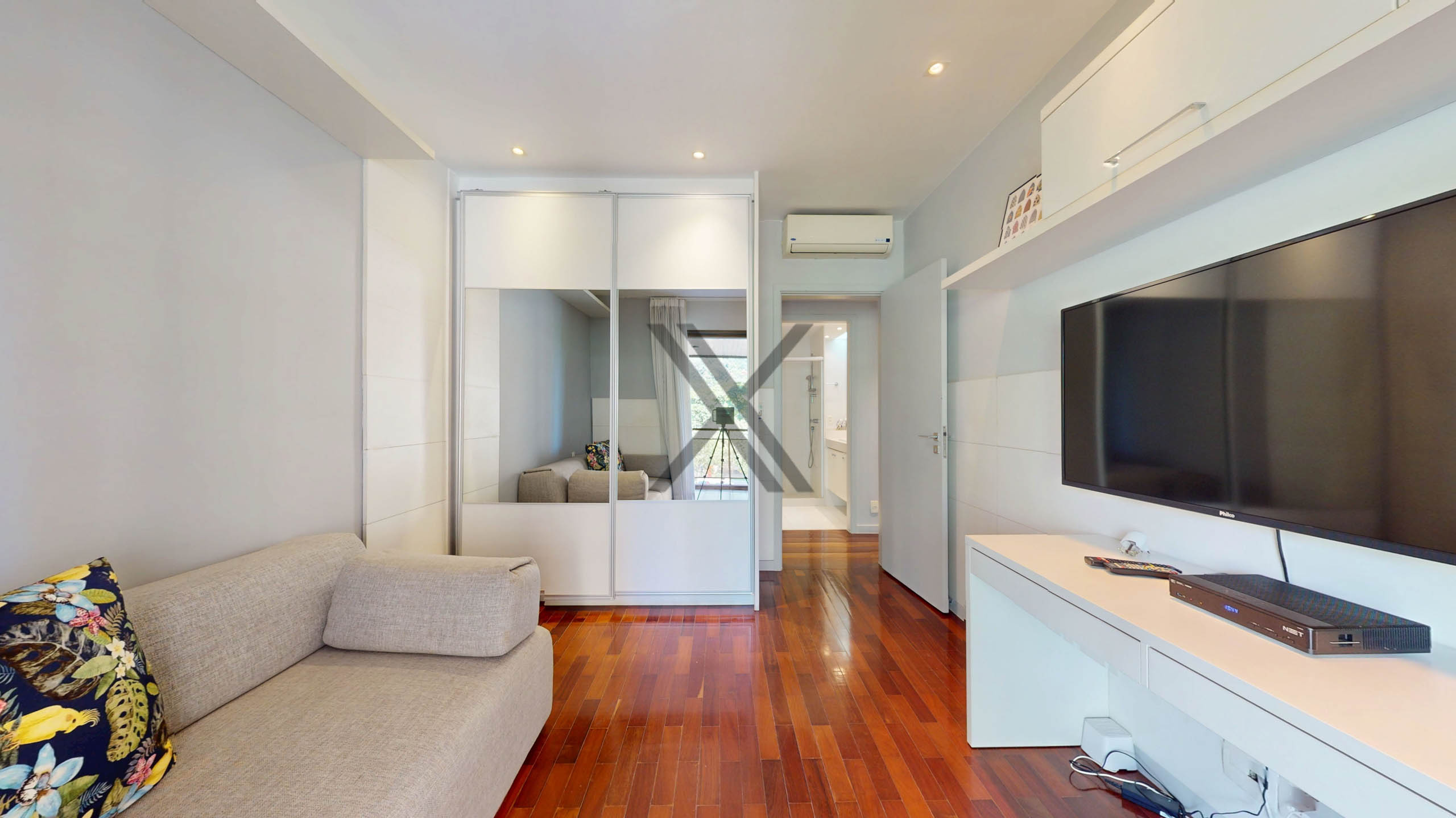 A área privativa possui uma sala de estar com 70m² em três ambientes, extensa varanda que circula toda área social e privativa com vista para o mar e Pedra da Gávea e um lavabo de apoio às visitas.