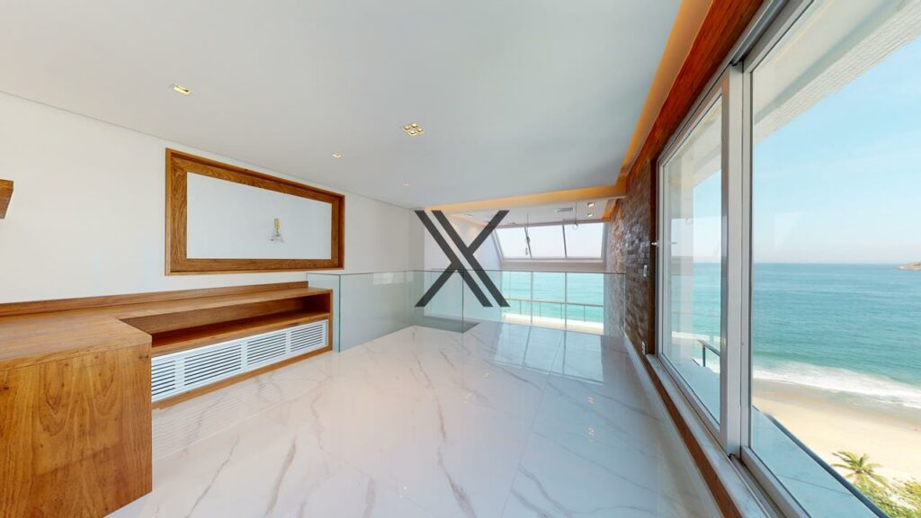 - Ampla área social com vista para o mar e pé-direito duplo com vista do céu.