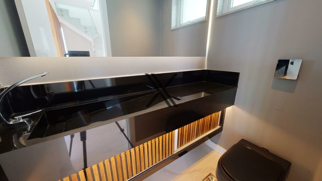 - Ampla sala de estar e jantar de 50 m², com projeto de iluminação e refrigeração.