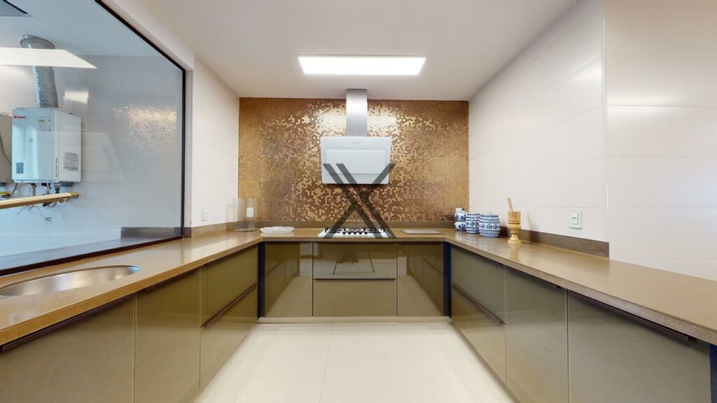 - Cozinha ampla e arejada, com ar-condicionado K7, copa, despensa, bancadas e armários planejados.