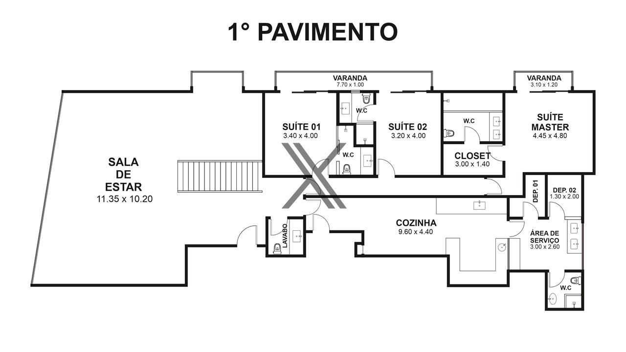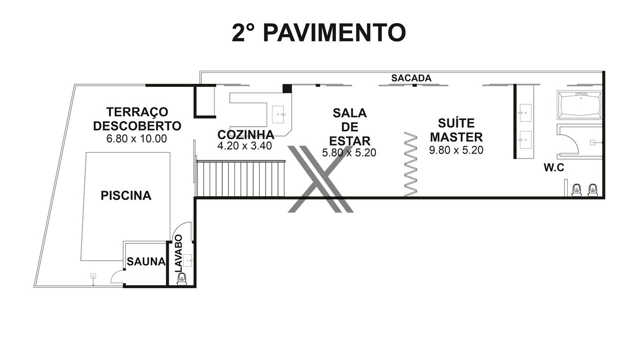 - Pé-direito de 3,00 m, proporcionando sensação de amplitude.